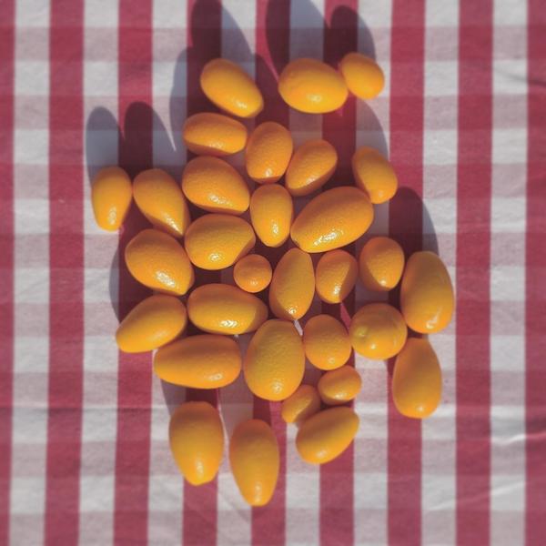 Hoy hemos hecho mermelada de Kumquat con nuestra pequeña cosecha. Le hemos añadido zumo de naranja, azúcar moreno, anís y canela.
